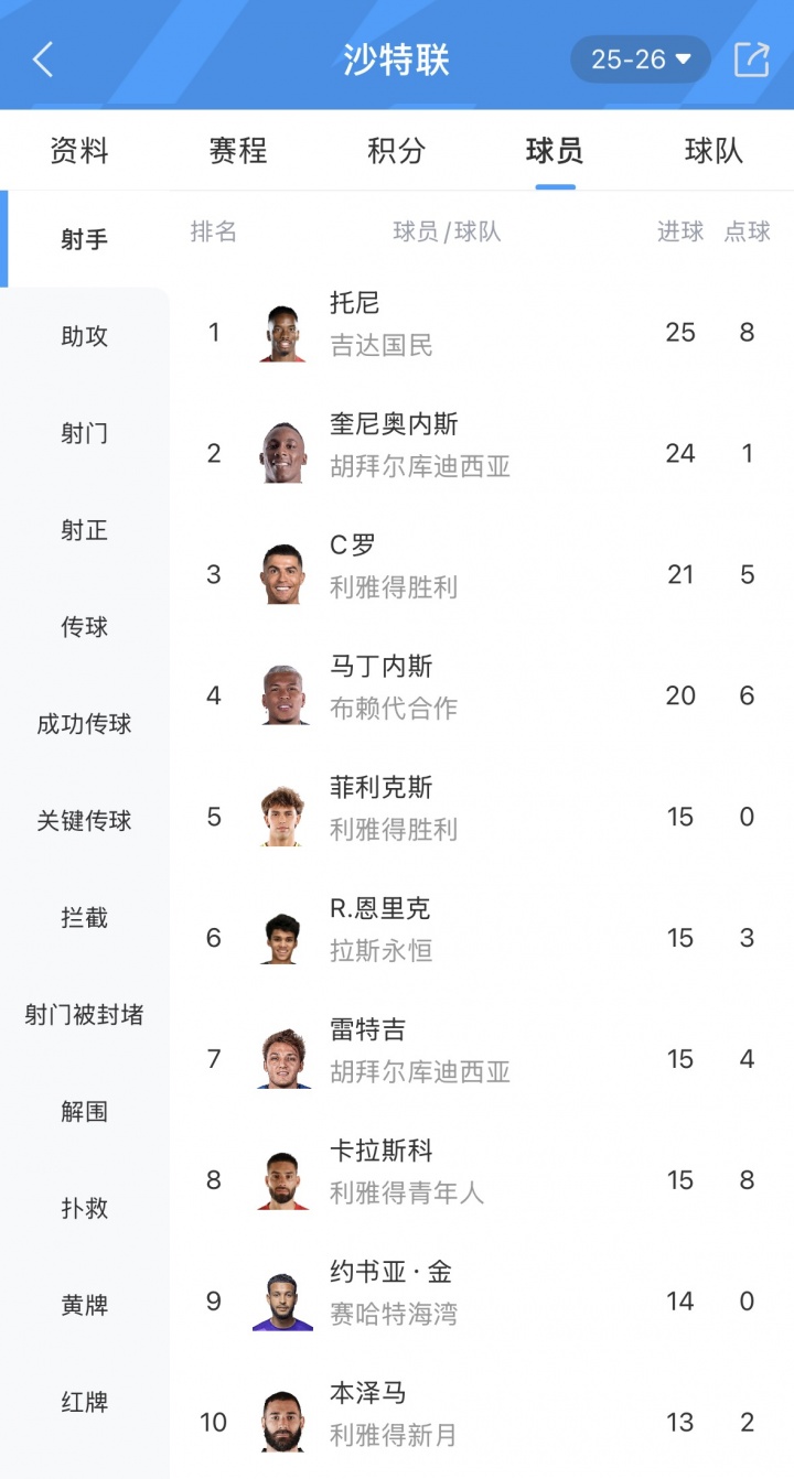 本场比赛菲利克斯2射1传,目前在沙特联射手榜排在第5,助攻榜11记助攻并列排在第一。